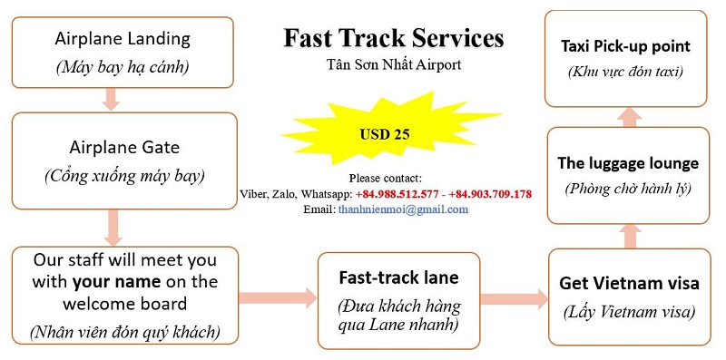 - Dịch vụ fast-track tại sân bay Tân Sơn Nhất (Fast-track service at Tan Sơn Nhất Airport): phí là USD 25.