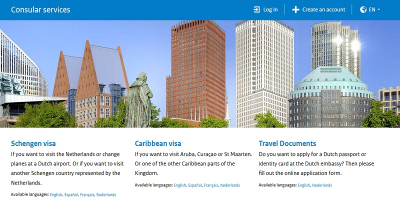 Giao diện trang chủ Cổng thông tin trực tuyến dành cho các dịch vụ lãnh sự tại Bộ Ngoại giao Hà Lan, cấp visa Hà Lan cho người nước ngoài